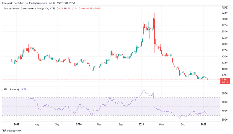 Výkonnost TME od IPO v roce 2018 (zdroj: tradingview.com)