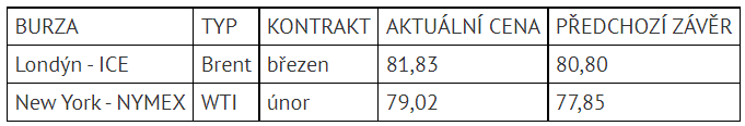 Krátce před 14:00 SEČ cena severomořské ropy Brent vykazovala růst o 1,3 procenta na 81,83 dolaru za barel. Americká lehká ropa WTI přidávala 1,5 procenta a obchodovala se za 79,02 dolaru za barel.
