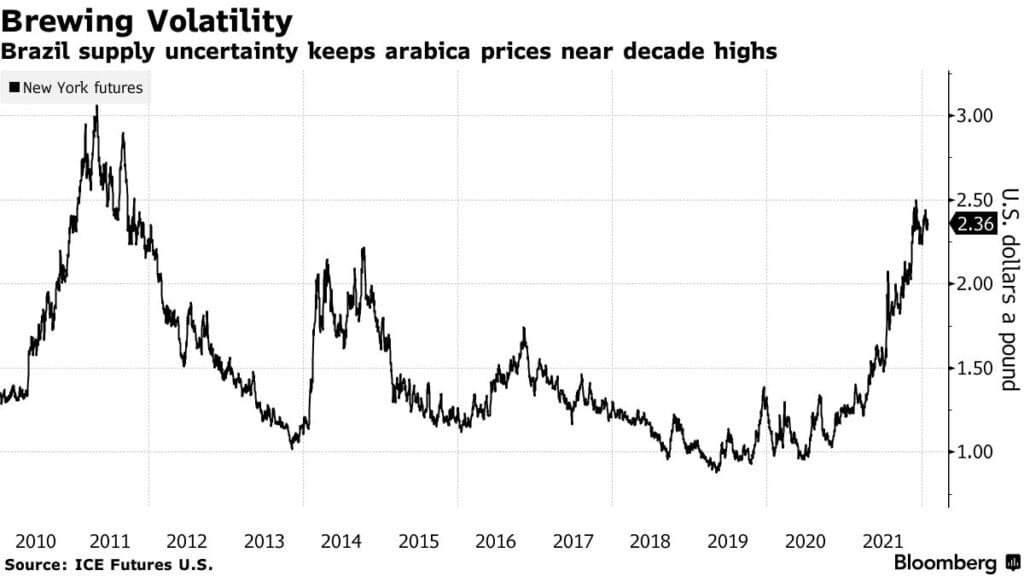 Letošní úroda je obzvláště důležitá, protože je pro stromy arabica největší ve dvouletém cyklu a následuje po loňské neúrodě, která způsobila nárůst cen futures na desetileté maximum. Široké rozpětí odhadů a velké změny jen přispívají k výkyvům cen na trhu, který je již tak znám svou nestálostí.