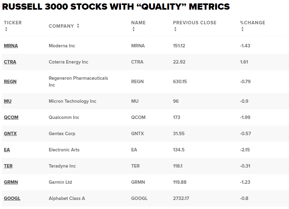 Volatilita však může být pro investory s dlouhodobějším investičním horizontem dobrou příležitostí k nákupu akcií za nižší ceny. Goldman nedávno vyzdvihl několik jmen s „kvalitními“ ukazateli, včetně silných rozvah, vysokých marží a tržních kapitalizací, jakož i nadprůměrného výnosu z volných peněžních toků.