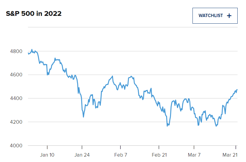 Index S&P 500 v minulém týdnu umazal téměř polovinu svých korekčních ztrát, protože investoři získali očekávanou jasnou zprávu od Federálního rezervního systému, který poprvé od roku 2018 zvýšil úrokové sazby. Centrální banka signalizovala, že očekává zvýšení sazeb na svých zbývajících šesti zasedáních v tomto roce.