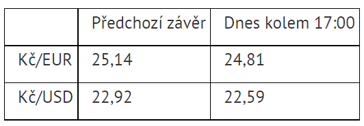 Vyplývá to z údajů na serveru Patria Online. Česká národní banka (ČNB) kvůli předchozímu propadu koruny po začátku ruské invaze na Ukrajinu zahájila 4. března intervence na devizovém trhu proti oslabování české měny.
