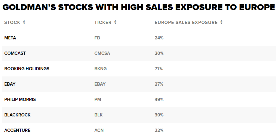 Vzhledem k tomu, že válka vykazuje jen málo známek toho, že dojde k jejímu urovnání, banka Goldman Sachs v pondělí rozeslala dvě portfolia klientům, kteří chtějí rozehrát situaci, kdy se Evropa rozšíří do ekonomického chaosu.