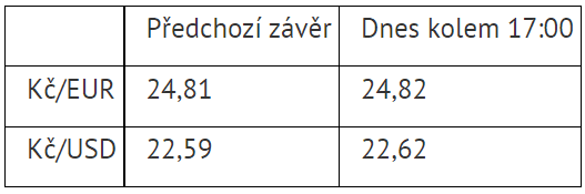 Koruna v pondělí posílila k evropské i americké měně o víc než 30 haléřů a k euru se vrátila pod 25 Kč/EUR. Kurz české měny se oproti pondělnímu podvečeru změnil jen minimálně, uvedl analytik Wood & Company Vojtěch Boháč. „Naděje na diplomatické vyřešení sporu na Ukrajině přineslo na regionální trhy zklidnění,“ doplnila analytička Komerční banky Jana Steckerová.