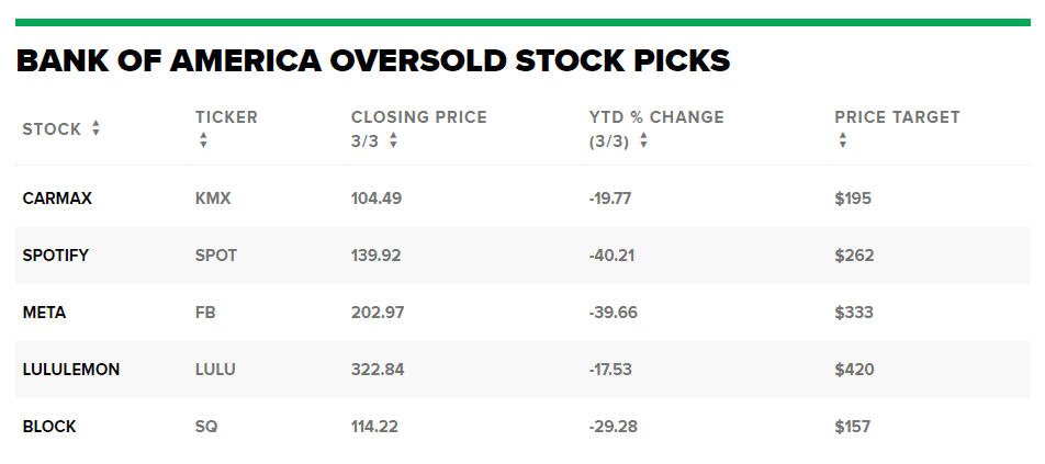 I přes pokračující výprodej se Bank of America domnívá, že některé akcie zvýší výnosy. Mezi jejími tipy jsou uvedeny společnosti Lululemon, CarMax, Spotify a technologičtí giganti Meta a Block. Všechny jsou od začátku roku v záporných číslech.