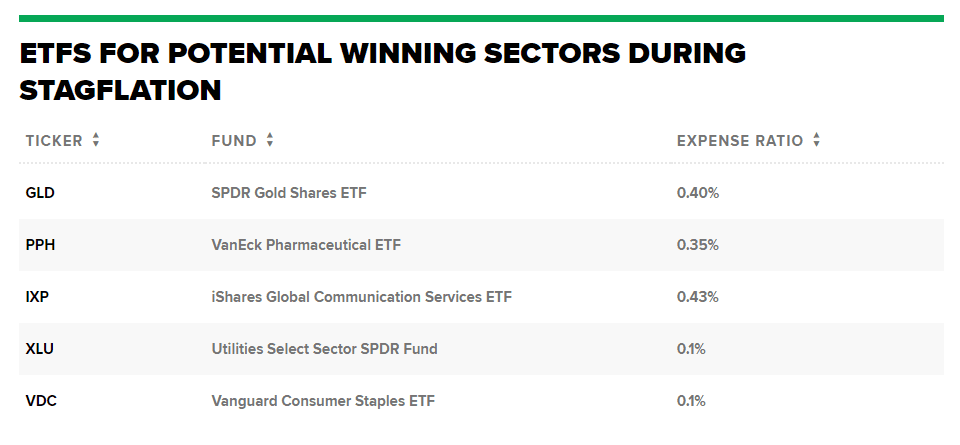 Komunální služby jsou obvykle závislé na schválení vlády, aby mohly přenést zvýšení nákladů na zákazníky, což může být v období stagflace obtížněji prodejné. U základních spotřebních výrobků by mohla být otázkou také cenová síla, protože inflace v dodavatelském řetězci by mohla vést k poklesu marží.