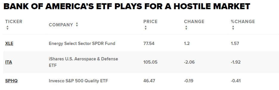 Firma zlepšila svůj pohled na energetické ETF a ETF pro letecký a obranný průmysl na příznivý a zařadila své nejlepší výběry pro oba sektory na seznam fondů, které by měly odolat nepřátelskému trhu.