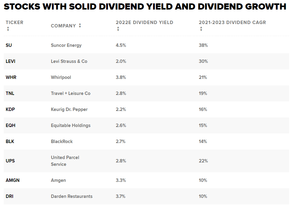 Inflace dosáhla rekordních hodnot a Federální rezervní systém zahájil v letošním roce možná několikeré zvýšení úrokových sazeb. Válka na Ukrajině zároveň způsobila, že ceny ropy vzrostly na rekordní úroveň. Investoři, kteří hledají stabilní příjem, se mohou poohlédnout po akciích, kterým rostou dividendy. Ty investorům nabízejí stabilní zdroj příjmu bez velkých cenových výkyvů jako růstové akcie.Goldman Sachs v nedávném sdělení investorům upozornil na několik akcií se solidním dividendovým výnosem, který ukazuje, kolik společnost každoročně vyplatí na dividendách, a na akcie s růstem dividend, který ukazuje, o kolik tyto dividendy za určité období vzrostou.Firma vybrala akcie s nákupním ratingem, které v současné době vyplácejí dividendu ve výši 2 % nebo více a u nichž se očekává, že do roku 2023 budou zvyšovat dividendu o 10 % ročně. Zde je 10 z těchto akcií:Společnost Suncor Energy má jednu z nejvyšších měr růstu dividend a aktuální dividendový výnos 4,5 %. Následuje výrobce oděvů Levi Strauss, který vykazuje 30% míru růstu dividend a aktuální výnos 2 %. Goldman vidí u Levi přibližně 49% růst.Pojišťovna Equitable Holdings má míru růstu dividendy 15 %. Akcie jsou zhruba 60 % od cílové ceny, kterou pro ně stanovil Goldman.Chcete využít této příležitosti?Jedinou dopravní akcií na seznamu je UPS s 22% růstem dividendy a výnosem 2,8 %.Na seznamu jsou také společnosti Travel + Leisure, Whirlpool, Keurig Dr Pepper, BlackRock, Amgen a Darden Restaurants.