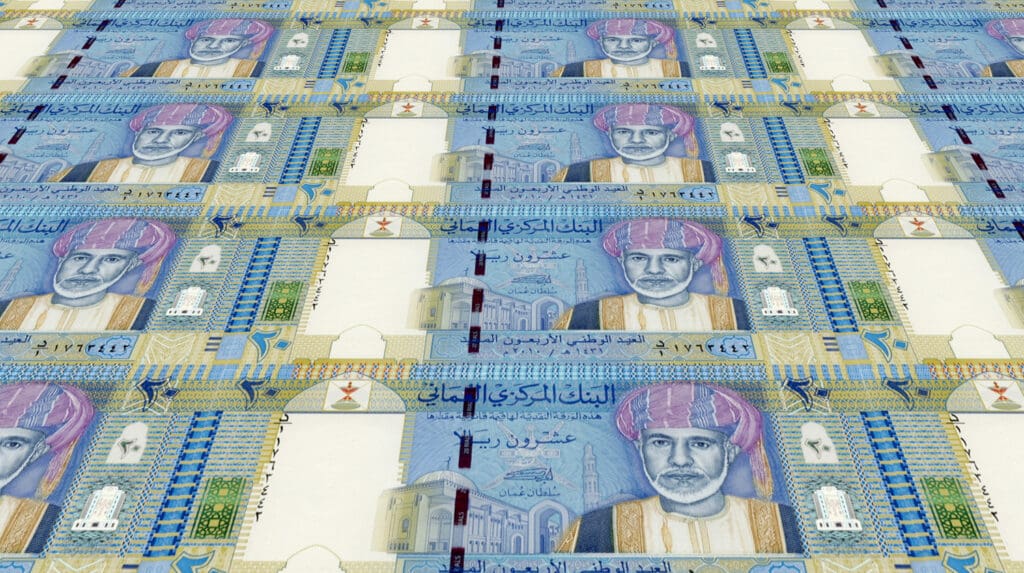 Omán je další zemí, která svou měnu navázala na americký dolar pevným kurzem, 2,60:1. Ománský riál (OMR) si udržel svou hodnotu vůči dolaru díky historicky přísné měnové politice Ománu a finančním omezením. Ománští politici obecně omezovali nabídku peněz, aby zemi ochránili před válkou a konflikty na Blízkém východě. To ovlivnilo míru inflace v zemi a úvěrová praxe v Ománu má tendenci upřednostňovat společnosti a podnikatelské záměry, které se vyhýbají riziku.