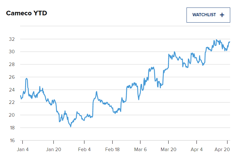 Investor vyzdvihl společnost Cameco jako své oblíbené jaderné jméno. Tato kanadská společnost je největší veřejně obchodovanou uranovou korporací na světě. Akcie Cameco letos vzrostly o více než 40 %.