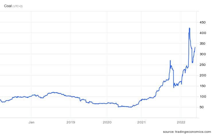 Zásoby uhlí v indických elektrárnách se v poslední době zmenšují především kvůli nižší domácí produkci, omezením v dopravě kvůli omezenému počtu železničních vagonů a snížení dovozu v důsledku vysokých sazeb za námořní přepravu. Údaje ministerstva energetiky ukazují, že k 19. dubnu měli výrobci elektřiny zásoby, které by jim v průměru vystačily na něco málo přes osm dní. Přestože státní společnost Coal India Ltd., která provozuje jedny z největších uhelných dolů v Asii, zvýšila v první polovině tohoto měsíce těžbu o 27 %, uvedla, že nebyla schopna držet krok s „intenzivní poptávkou“.