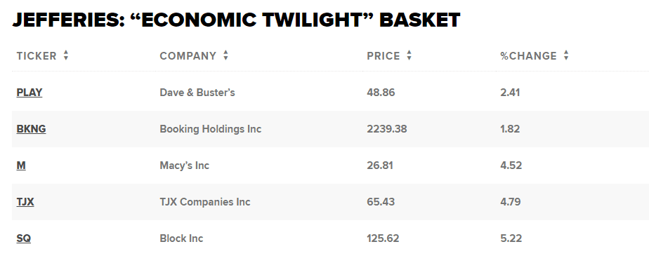 Na seznam „ekonomického soumraku“ Jefferies se dostaly také společnosti Booking Holdings a Macy’s. Všechny akcie v koši firmy mají nákupní hodnocení.