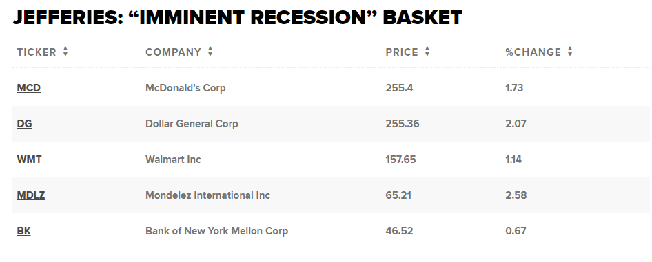 Scénář 2: Recese Pokud ekonomika poklesne dříve, než se očekává, Jefferies vyložila akcie pro prostředí recese. Podívejte se na pět akcií, které firma vybrala.