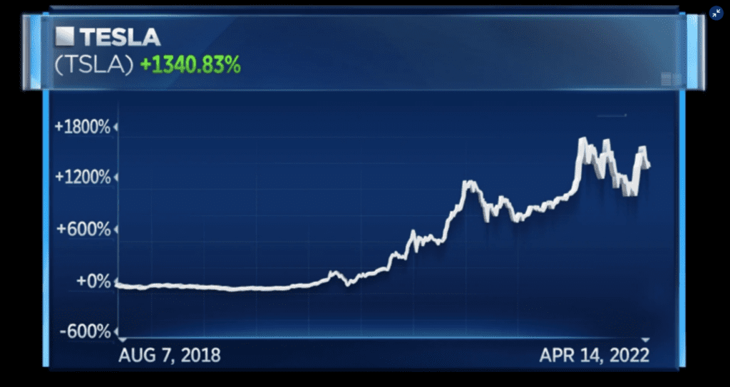 Tesla nikdy nebyla převedena na soukromý trh a místo toho se stala jednou z největších akciových sázek následujících tří let. Po očištění o rozdělení vzrostly akcie od zveřejnění tweetu o více než 1 300 %.