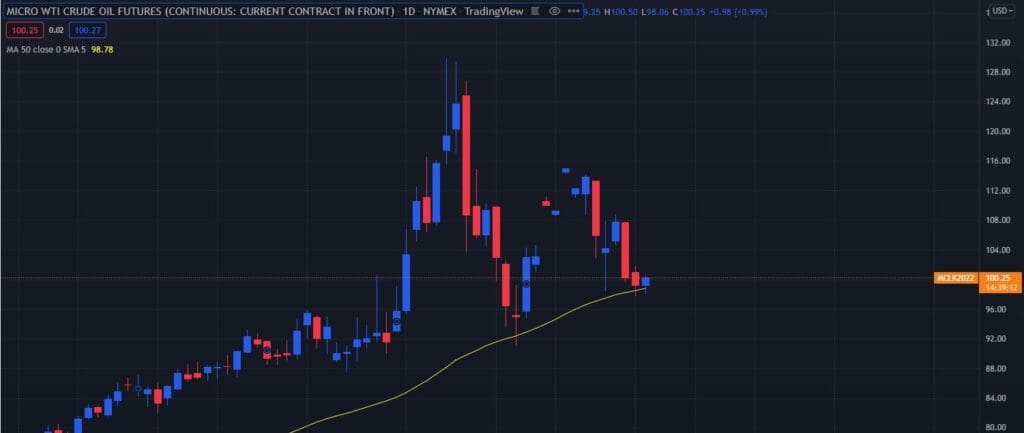 West Texas Intermediate smazala počáteční ztráty a obchodovala se nad 99 USD za barel poté, co se minulý týden propadla o 13 %. Čína se potýká s obnovenou epidemií koronaviru, což poškozuje poptávku po ropě. Téměř všichni obyvatelé 25milionové Šanghaje jsou v nějaké formě uzavřeni, protože v zemi denně přibylo více než 13 000 nakažených, přičemž státní média informovala o případu nakažení novým podtypem.
