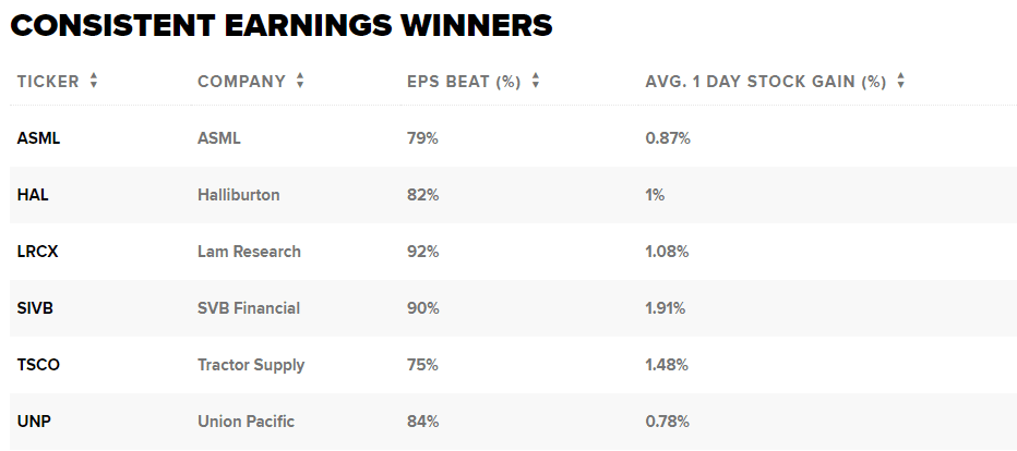 Aby se připravili na novou šňůru výsledků, prozkoumali jsme v CNBC Pro údaje Bespoke Investment Group a rozluštili, které společnosti mají tendenci překonávat odhady zisků a obchodovat se výše.