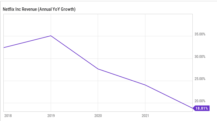 Netflix poprvé po téměř deseti letech ztratil předplatitele. Dále předpovídá ztrátu dvou milionů předplatitelů ve druhém čtvrtletí roku 2022. Strategie, podle které fungovala s omezenou konkurencí, fungovala dobře, ale s nástupem konkurence je možná čas na změnu. Akcie společnosti se oproti svému maximu propadly o 71 %, takže je pravděpodobné, že bude muset co nejdříve prokázat účinnou úpravu.