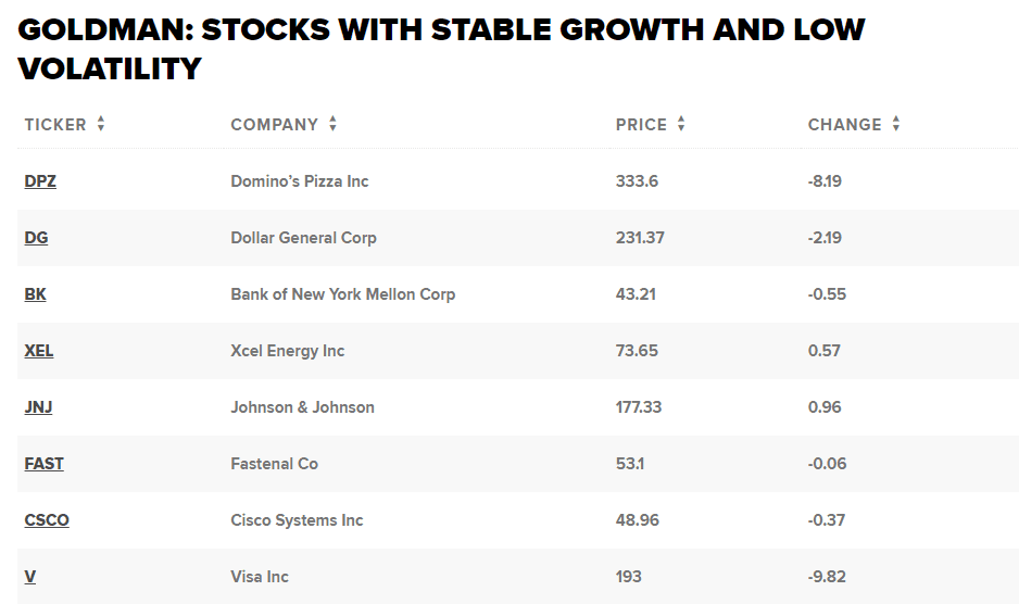 V současném tržním prostředí Goldman sdílel akcie se stabilním desetiletým růstem EBITDA a nízkou krátkodobou volatilitou cen akcií.
