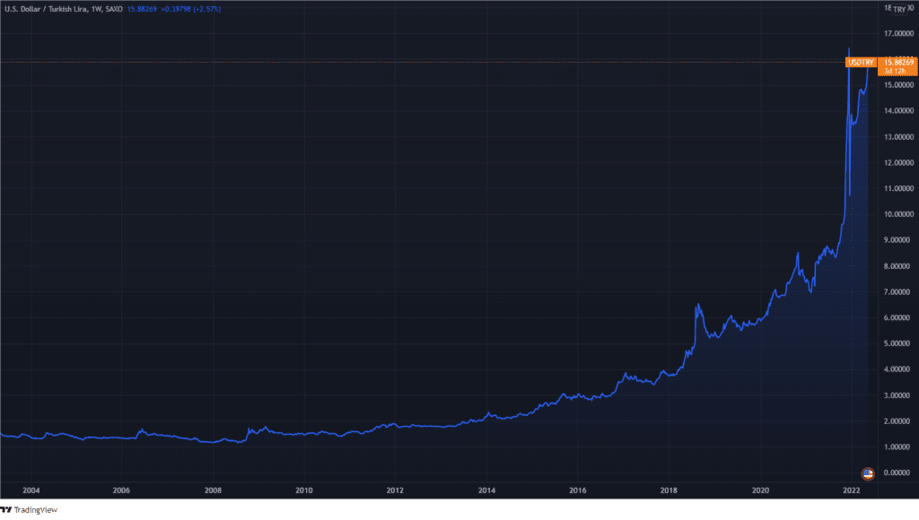„Slabší lira odráží zranitelnost turecké ekonomiky vůči vysokým cenám energií a rostoucí riziko globální recese nebo alespoň synchronizovaného zpomalení,“ uvedl Piotr Matys, analytik společnosti InTouch Capital Markets Ltd. „Opatření, která Erdoganova vláda ve spolupráci s centrální bankou zavedla, se ukazují jako nedostatečná k tomu, aby udržela liru stabilní po delší dobu.“