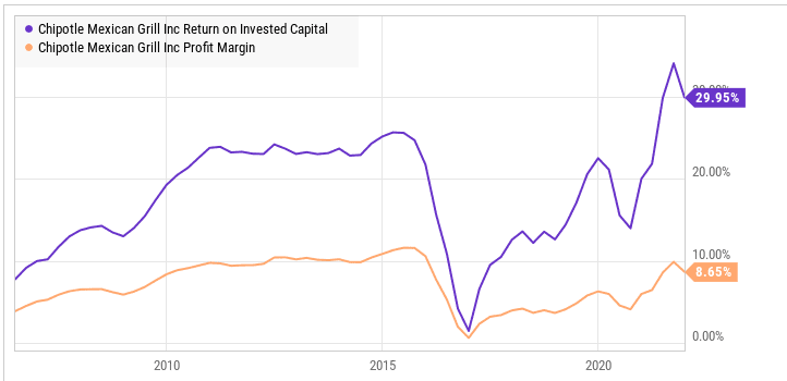 Po incidentech týkajících se bezpečnosti potravin, které v roce 2016 způsobily propad návštěvnosti restaurací a zisku, se společnosti Chipotle postupně daří obnovovat ziskovou marži na předchozí úroveň. To vede k rostoucí návratnosti investovaného kapitálu (ROIC), která za poslední rok dosáhla téměř 30 %.