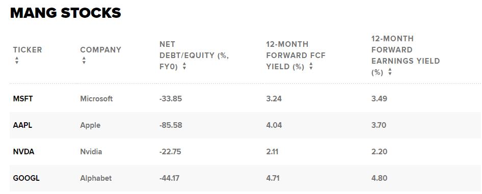 Místo toho uvedl, že by seskupení „MANG“ – Microsoft, Apple, Nvidia a Alphabet – na základě jejich rozvah, výnosů ze zisku a výnosů z volných peněžních toků.