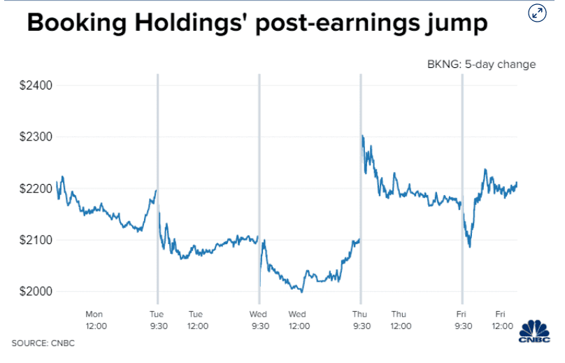 Společnost Booking Holdings vykázala za první tři měsíce letošního roku hrubé rezervace v hodnotě 27 miliard dolarů, což je nejvyšší čtvrtletní částka v historii, uvedl generální ředitel Glenn Fogel v hovoru k výsledkům společnosti. Akcie cestovního ruchu zůstaly světlým bodem čtvrtečního výprodeje na trhu a vzrostly o téměř 3,3 % poté, co společnost překonala očekávání analytiků.