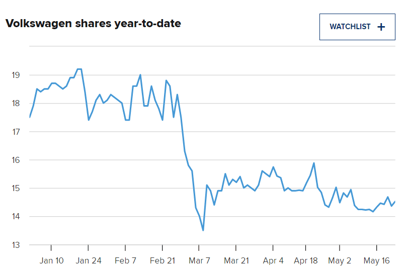 Akcie společnosti Volkswagen kotované na frankfurtské burze se v úterý ráno obchodovaly přibližně o 0,9 % níže, zhruba v souladu se ztrátami v automobilovém sektoru na celoevropském indexu Stoxx 600.