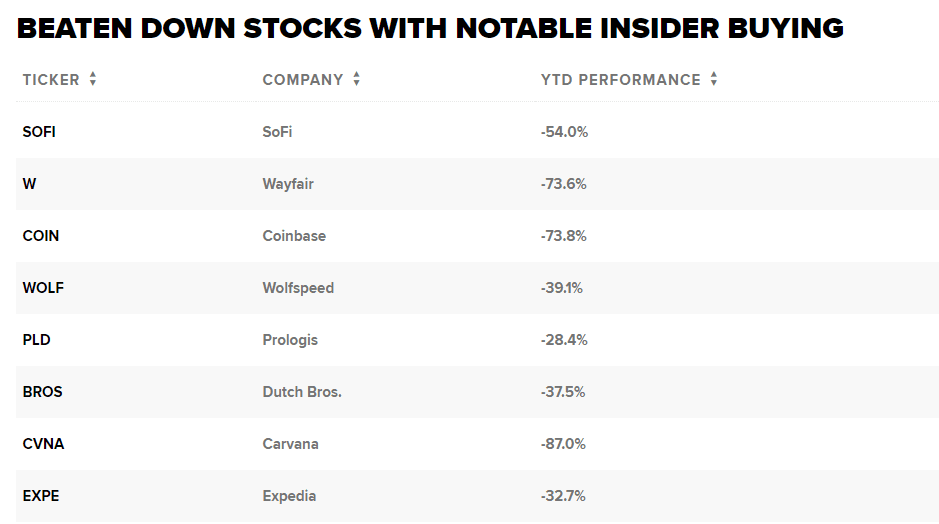 Nákupy akcií insiderů jsou ukazatelem, který mnoho profesionálních investorů používá k hodnocení společnosti. Pokud zasvěcené osoby nakupují akcie, může to být znamením, že lidé uvnitř společnosti věří v její vyhlídky více než širší trh.A vzhledem k tomu, že mnoho akcií v letošním roce dramaticky kleslo, někteří insideři vidí příležitosti. Níže je uveden seznam akcií, které od začátku roku poklesly o více než 25 % a u kterých došlo v uplynulém týdnu k významným nákupům ze strany insiderů podle údajů InsiderScore.com/Verity a hlášení o cenných papírech.Jeden z nejvýznamnějších nákupů zasvěcených osob se uskutečnil ve společnosti SoFi, kde generální ředitel Anthony Noto minulý týden získal zhruba 40 000 akcií. K tomu se přidal nákup 39 000 akcií z 13. května.Dohromady tyto nákupy činily přibližně 550 000 USD.Fintech společnosti se v posledních měsících dostaly do nemilosti. Akcie SoFi letos klesly o více než 50 % a na začátku tohoto měsíce dostaly velký zásah, když společnost omylem předčasně zveřejnila své výsledky za první čtvrtletí. Zpráva ukázala slabší než očekávaný odhad pro druhé čtvrtletí.Další oblastí trhu, která byla těžce zasažena, je elektronický obchod. Tato skupina zaznamenala velký nárůst tržeb během pandemie, ale odklon spotřebitelských výdajů od zboží a obavy z recese a problémů s dodavatelským řetězcem akciím škodí.Chcete využít této příležitosti?Zdroj: Getty ImagesŘeditel společnosti Wayfair Michael Choe sází na oživení tohoto odvětví. Minulý týden nakoupil akcie v hodnotě 1,7 milionu dolarů. Choe nyní vlastní zhruba 159 000 akcií Wayfair, což je podíl v hodnotě přibližně 8 milionů dolarů při pondělní zavírací ceně.Největší nákup však možná přišel u Coinbase, krypto burzy, jejíž růst se zastavil v souvislosti s poklesem ceny bitcoinu. Ředitel Fred Ehrsam minulý týden nakoupil akcie v hodnotě 25 milionů dolarů. Což je doplněk k nákupu za 50 milionů USD z počátku měsíce.Mimo výše uvedený seznam se objevily také některé společnosti, u nichž došlo k výrazným nákupům ze strany insiderů, které však byly alespoň částečně kompenzovány prodejem ze strany jiných osobností firmy. Dvěma příklady z minulého týdne byly společnosti HubSpot a Coupang.