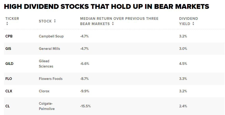Na opačném konci seznamu vykazují větší ztráty společnosti Clorox a Colgate-Palmolive, i když byly stále menší než 20 %. Clorox má zápornou mediánovou ztrátu 9,9 %. Colgate-Palmolive, jehož ztráty se v každém dalším medvědím cyklu prohlubovaly, má mediánovou ztrátu 15,5 %.