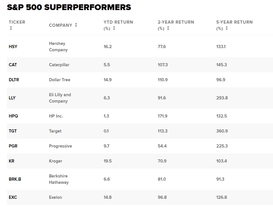 U každé akcie je beta – měřítko volatility akcií – menší než 1, což znamená, že cena akcií je méně volatilní než celý trh. Jejich dvouleté, pětileté a meziroční výnosy jsou také vyšší než výnosy indexu S&P 500. A nejen to – jejich výnosy od počátku roku jsou od pátku také kladné.