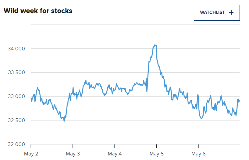 Po středečním nejlepším dni od roku 2020 následoval ve čtvrtek nejhorší den od roku 2020. Třicetičlenný index zakončil týden poklesem o 0,24 % na úrovni 32 899,37, což znamenalo jeho šestý týdenní pokles v řadě. Během pětidenního úseku se Dow obchodoval až na úrovni 34 117,74 bodu a nejníže na 32 474,69 bodu.