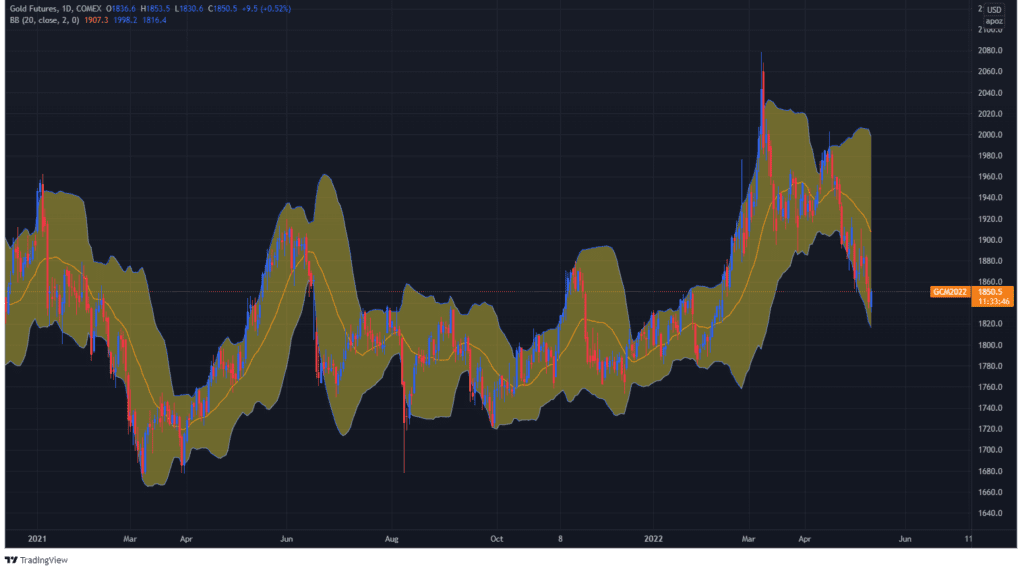 Bollingerova pásma® byla vyvinuta a autorsky chráněna slavným technickým obchodníkem Johnem Bollingerem a byla navržena k odhalování příležitostí, které investorům poskytují vyšší pravděpodobnost správného rozpoznání, kdy je aktivum přeprodané nebo překoupené.Bollingerova pásma jsou velmi oblíbenou technikou. Mnoho obchodníků se domnívá, že čím blíže se ceny pohybují k hornímu pásmu, tím je trh více překoupený, a čím blíže se ceny pohybují k dolnímu pásmu, tím je trh více přeprodaný. John Bollinger má soubor 22 pravidel, kterými je třeba se řídit při používání pásem jako obchodního systému.Na grafu znázorněném níže Bollingerova pásma ohraničují 20denní SMA akcie horním a dolním pásmem spolu s denními pohyby ceny akcie. Protože směrodatná odchylka je měřítkem volatility, při větší volatilitě trhů se pásma rozšiřují; v méně volatilních obdobích se pásma zužují.Dow Jones – Zdroj: Tradingview Squeeze je ústředním konceptem Bollingerových pásem. Když se pásma přiblíží k sobě a zúží klouzavý průměr, nazývá se to squeeze. Squeeze signalizuje období nízké volatility a obchodníci jej považují za potenciální známku budoucí zvýšené volatility a možných obchodních příležitostí. Naopak čím více se pásma od sebe vzdalují, tím je pravděpodobnější možnost poklesu volatility a větší možnost ukončení obchodu. Tyto podmínky však nejsou obchodními signály. Pásma nijak nenaznačují, kdy může dojít ke změně nebo jakým směrem by se cena mohla pohybovat.Chcete využít této příležitosti?Přibližně 90 % cenové akce se odehrává mezi dvěma pásmy. Jakýkoli průraz nad nebo pod pásma je významnou událostí. Proražení není obchodním signálem. Většina lidí dělá chybu v tom, že se domnívá, že zasažení nebo překročení jednoho z pásem je pro cenu signálem k nákupu nebo prodeji. Proražení neposkytuje žádné vodítko ohledně směru a rozsahu budoucího pohybu ceny.Zlato – Zdroj: TradingviewBollingerova pásma nejsou samostatným obchodním systémem. Jsou pouze jedním z ukazatelů, který má obchodníkům poskytnout informace týkající se volatility cen. John Bollinger doporučuje používat je společně se dvěma nebo třemi dalšími nekorelovanými ukazateli, které poskytují přímější tržní signály. Podle něj je zásadní používat ukazatele založené na různých typech dat. Mezi jeho oblíbené technické techniky patří divergence/konvergence klouzavého průměru , objem na váze a index relativní síly .Protože se vypočítávají z jednoduchého klouzavého průměru, váží starší cenové údaje stejně jako nejnovější, což znamená, že nové informace mohou být rozředěny zastaralými údaji. Také použití 20denního SMA a 2 směrodatných odchylek je trochu svévolné a nemusí fungovat pro každého v každé situaci. Obchodníci by měli své předpoklady o SMA a směrodatné odchylce odpovídajícím způsobem upravit a sledovat je.