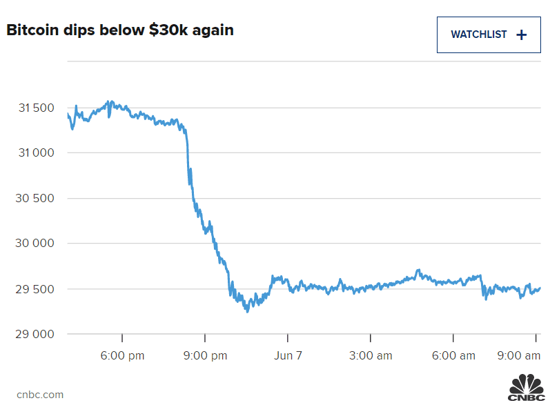 Největší kryptoměna podle tržní kapitalizace se propadla o více než 6 % na 29 434 dolarů, uvádí Coinbase. V předchozí seanci si bitcoin připsal více než 4 % a obchodoval se nad 31 000 USD. Ether se v úterý propadl o 6,6 % na přibližně 1 737 USD.