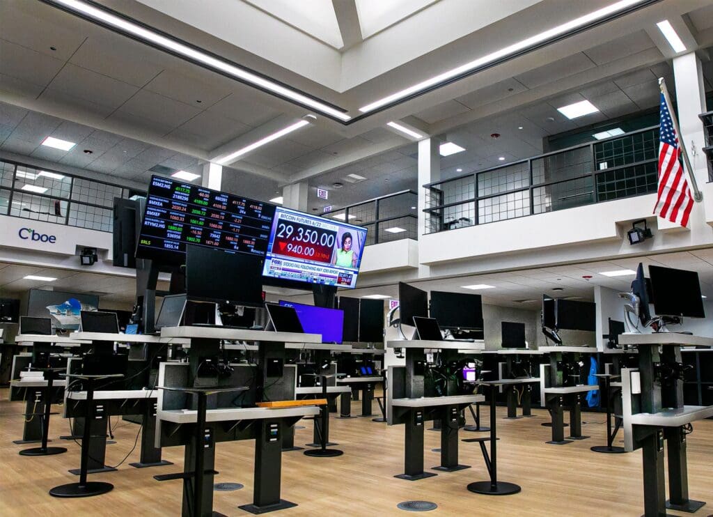 Společnost Cboe, dříve známá jako Chicago Board Options Exchange, nadále provozuje své burzy akcií a futures elektronicky. Tři další opční burzy, které Cboe provozuje, jsou rovněž plně elektronické, což znamená, že nevyžadují fyzické prostory ani takzvaný „open outcry systém“, v němž příkazy vykřikují a párují makléři a tvůrci trhu, kteří zabírají fyzické prostory v budově.