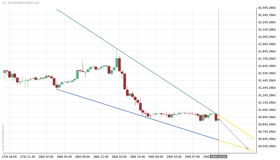 Futures vázané na index Dow Jones Industrial Average se snížily o 17 bodů, tj. o méně než 0,1 %. Futures na indexy S&P 500 a Nasdaq 100 klesly každý o 0,2 %.Akcie společnosti Pinterest vyskočily o více než 3 % díky zprávě, že generální ředitel Ben Silbermann odstupuje.Investoři očekávají komentáře předsedy Federálního rezervního systému Jeroma Powella na fóru Evropské centrální banky. Na pořadu dne jsou také hospodářské výsledky společností Bed Bath & Beyond, General Mills a McCormick.Středeční pohyby následovaly po prudkých ztrátách hlavních průměrů z předchozího dne. Dow v úterý klesl o více než 1,5 %, zatímco S&P 500 a Nasdaq Composite se propadly o 2 %, resp. 3 %. Všechny benchmarky zahájily seanci silnými zisky, ale neuspokojivé údaje o spotřebitelské důvěře tyto růsty zastavily a poslaly akcie dolů.Vzhledem k tomu, že ve čtvrtek končí druhé čtvrtletí, rostou obavy z recese. Obavy ze zpomalování ekonomiky a agresivního zvyšování úrokových sazeb pohltily většinu první poloviny roku 2022, protože investoři nadále hledají dno prudkého výprodeje na trhu.Dow Jones – Zdroj: AutochartistIndex S&P 500, který v roce 2022 klesl o zhruba 20 %, má nakročeno k nejhoršímu prvnímu pololetí od roku 1970, kdy index ztratil 21,01 %. Mezitím na čtvrtletní bázi jsou Dow i S&P 500 na cestě k nejhoršímu výkonu od roku 2020. Nasdaq směřuje ke svému nejhoršímu tříměsíčnímu období od roku 2008.Všechny hlavní indexy zakončily úterní seanci v záporných číslech s výjimkou energetického indexu, který vzrostl o 2,7 % díky růstu cen ropy.Chcete využít této příležitosti?Pouze tři akcie Dow skončily den výše, přičemž v čele ztrát stála společnost Nike. Akcie této společnosti vyrábějící sportovní oblečení klesly o 7 % poté, co varovala, že vyšší náklady na dopravu a zpoždění v dodávkách budou pravděpodobně přetrvávat.Poražené akcie čipových společností Nvidia a Advanced Micro Devices zakončily den o více než 6 % níže, zatímco velké technologické společnosti včetně Netflix, Amazon a Meta Platforms uzavřely každá zhruba o 5 % níže.Investoři v úterý nadále bedlivě sledovali Čínu, která zmírnila omezení Covid pro příchozí cestovatele a zkrátila dobu karantény na sedm dní. Akcie kasin Wynn Resorts a Las Vegas Sands se díky této zprávě posunuly výše.