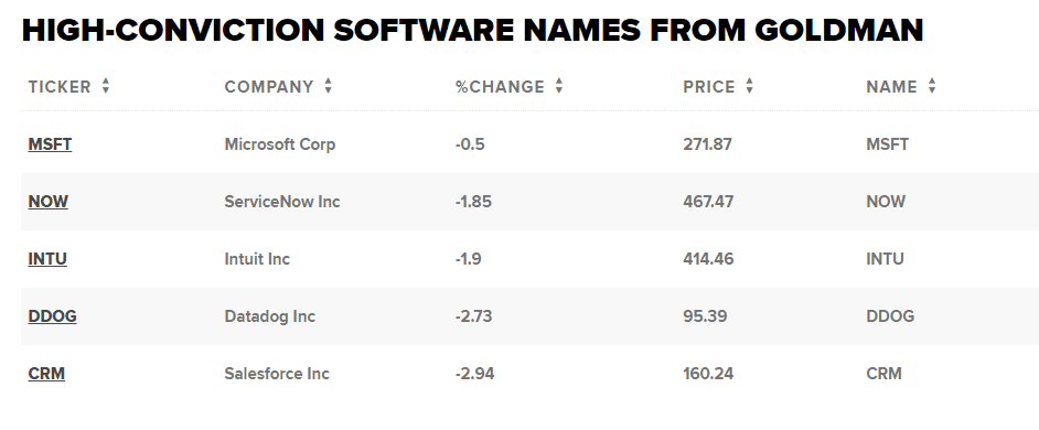 ServiceNow, Intuit a Datadog byly dalšími jmény v sektoru, které Goldman považuje za atraktivní již nyní.