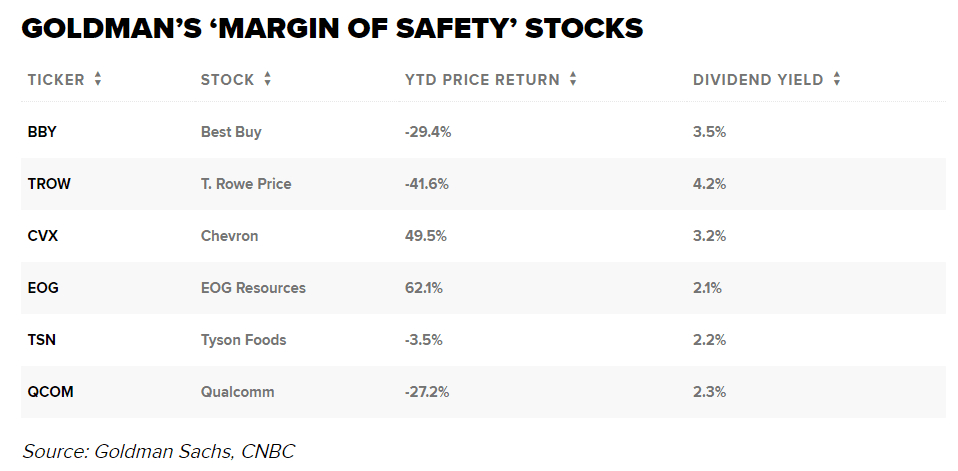 Recese však nemá na každou akcii stejný dopad. Goldman doporučil investorům, aby se zaměřili na společnosti vyplácející dividendy a na akcie s „bezpečnostní rezervou“ nebo na akcie, které „se obchodují za ocenění nižší než minulá minima medvědího trhu i po teoretickém snížení EPS“.