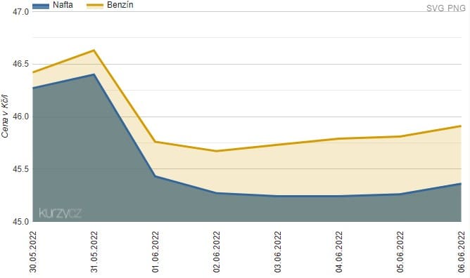 Cena benzínu a nafty v ČR – Zdroj: Kurzy.cz