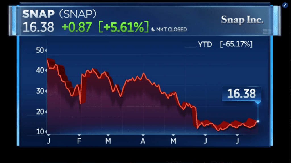 Společnost Snap ve svém dopise investorům uvedla, že neposkytuje výhled na třetí čtvrtletí, protože „výhled do budoucna zůstává neuvěřitelně náročný“. Společnost uvedla, že dosavadní tržby v tomto období jsou „přibližně stejné“ jako před rokem. Analytici podle společnosti Refinitiv očekávali pro třetí čtvrtletí růst tržeb o 18 %.