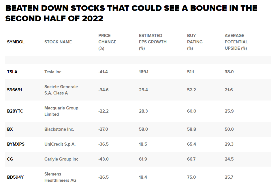 Ale první polovina roku 2022 se pro mnohé investory ukázala být něčím jako noční můrouSvětový index MSCI měl nejhorší začátek roku v historii a index S&P 500 zakončil první pololetí s nejhorší výkonností od roku 1970.Jak se rozjíždí druhá polovina roku, Ned Davis Research uvedl, že by mohlo dojít k „dlouho očekávanému“ malému úlevnému odrazu. Tak či onak, pozorovatelé trhu očekávají pokračující volatilitu, protože obavy z recese rostou a zisky se dostávají pod tlak.Navzdory tomu zůstávají analytici u vybraných globálních akcií optimističtí – a ty by mohly investorům poskytnout příležitosti.Zdroj: BloombergJak prověřujemePro identifikaci těchto akcií použila společnost CNBC Pro údaje společnosti FactSet k výběru akcií MSCI World, které byly v první polovině roku oslabeny, ale které jsou podle analytiků zralé na oživení.Tyto akcie zaznamenaly v prvních šesti měsících roku pokles cen akcií o více než 20 %, ale podle údajů společnosti FactSet zůstávají většinou analytiků hodnoceny jako „buy“ s průměrným potenciálním růstem o nejméně 20 % na základě konsensuálních cílových cen.Seznam je pak dále zúžen výběrem akcií, u nichž se očekává, že v letošním roce vzroste jejich zisk na akcii alespoň o 20 %.Chcete využít této příležitosti?Před výsledkovou sezónou za druhé čtvrtletí se do popředí zájmu dostaly zisky společností, přičemž pozorovatelé trhu očekávají další poklesy akcií, protože společnosti vykazují nižší zisky a odhady.Jim Coulter, zakládající partner a výkonný předseda soukromé kapitálové společnosti TPG, pro CNBC uvedl, že se domnívá, že výsledková sezóna bude znamenat „druhou kapitolu“ poklesu trhu, protože inflace prochází dodavatelskými řetězci a zasáhne výsledky v mnoha odvětvích.Akcie, které se dostaly na seznamNa obrazovku se dostala řada akcií polovodičů. Tento sektor, který byl jedním z nejvýraznějších výkonů roku 2021, zaznamenal v letošním roce prudký zvrat. Fond iShares Semiconductor ETF se od počátku roku propadl o téměř 40 % a výrazně zaostává za hlavními průměry.Rostou obavy, že sektor polovodičů směřuje k poklesu v souvislosti s přebytkem zásob a zpomalením prodeje osobních počítačů a chytrých telefonů, protože rostoucí inflace nutí spotřebitele utahovat si opasky.Na obrazovce CNBC Pro se objevilo několik čipových gigantů, včetně společností Nvidia, Advanced Micro Devices, ASML a Broadcom.Společnost Nvidia ztratila v prvních šesti měsících roku neuvěřitelných 48,2 % své tržní hodnoty – a analytici neočekávají úplné zotavení ceny jejích akcií, což dává akciím průměrný potenciál růstu 38,5 %. Očekává se, že společnost letos zvýší svůj zisk na akcii o 36,5 %.Zdroj: Getty ImagesPouze jedna čipová akcie na obrazovce má potenciální růst vyšší než její letošní pokles. Akcie arizonské společnosti ON Semiconductor letos klesly o 29,1 %, ale analytici se domnívají, že akcie mají potenciální růst o 64,1 %.Na obrazovku se dostala také řada finančních akcií. Patří mezi ně soukromé kapitálové společnosti Blackstone a Carlyle a několik bank, například Societe Generale, Macquarie a UniCredit.Investoři zvažují rostoucí rizika recese pro finanční společnosti a potenciální zisky marží z vyšších nákladů na půjčky v důsledku růstu úrokových sazeb. Akciím bank se obecně daří v prostředí rostoucích úrokových sazeb, protože obvykle dosahují vyšších čistých úrokových výnosů, ale recese by mohla vést k nižšímu objemu půjček a potenciálně vyššímu počtu nesplácených úvěrů.Na obrazovce CNBC Pro se objevil také výrobce elektromobilů Tesla. Cena akcií tohoto elektromobilového giganta se letos propadla o více než 41 %, což bylo mimo jiné způsobeno hrozícím propouštěním, nejistotou ohledně dohody generálního ředitele Elona Muska na Twitteru a jeho posledními výroky o nových továrnách v Německu a Texasu, které přišly o „miliardy dolarů“.Texaská automobilka také zažila neuspokojivé druhé čtvrtletí, kdy dodala o 17,9 % méně elektromobilů než v předchozím čtvrtletí, protože čínská odstávka spojená s Covid-19 narušila její výrobu a dodavatelský řetězec.Zdroj: Getty ImagesV letošním roce by však největší světový výrobce elektromobilů mohl zaznamenat výrazné zlepšení zisku na akcii, když podle údajů společnosti Factset odhaduje růst zisku na akcii o 169,1 %.Mezi další akcie, které se dostaly na obrazovku, patří průmyslové akcie Airbusu a dánské lodní společnosti A.P. Moller, německá společnost Siemens Healthineers vyrábějící zdravotnické přístroje, švýcarská společnost Sika vyrábějící speciální chemikálie, výrobce oceli ArcelorMittal a francouzská poradenská společnost Capgemini.