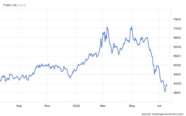 Palmový olej byl ovlivněn měnící se exportní politikou Indonésie. Země koncem dubna zavedla zákaz dodávek, který měl snížit prudce rostoucí náklady na domácí kuchyňský olej a omezit inflaci potravin. Toto zastavení však mělo jen malý dopad na místní ceny a místo toho vedlo k přeplnění skladovacích nádrží.