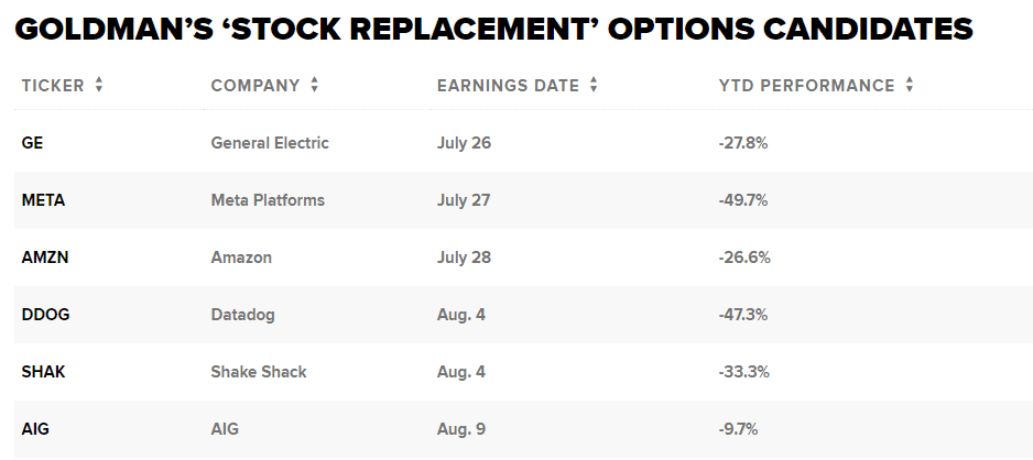 Goldman identifikoval několik akcií, u nichž jsou analytici firmy optimističtí a u nichž opční prostředí vypadá atraktivně.