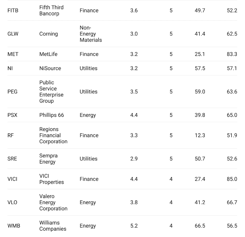 Mezi další společnosti na tomto seznamu patří American Electric Power Company, Broadcom, Citizens Financial Group, Digital Realty Trust, MetLife, NiSource, VICI Properties a Williams Companies.