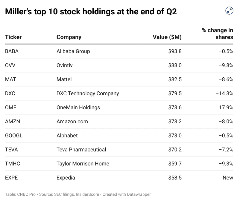 Podle nedávné zprávy 13F přidal Miller ve druhém čtvrtletí nový podíl v cestovní společnosti Expedia. K 30. červnu držel investor 616 700 akcií v celkové hodnotě 58,5 milionu USD, jak uvádí InsiderScore. Akcie tvoří 3 % portfolia.