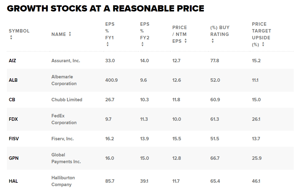Pro vyhledání těchto jmen použil server CNBC Pro údaje společnosti FactSet z pátku a hledal akcie s odhadovaným růstem zisku na akcii v letošním a příštím roce, který je vyšší než tržní průměr 8 %, a levnějším forwardovým P/E, než je současné tržní forwardové P/E ve výši 17,5 %. Více než 50 % analytiků hodnotí tyto akcie jako nákupní a tyto názvy mají na základě konsensuální cílové ceny alespoň 10% nárůst.