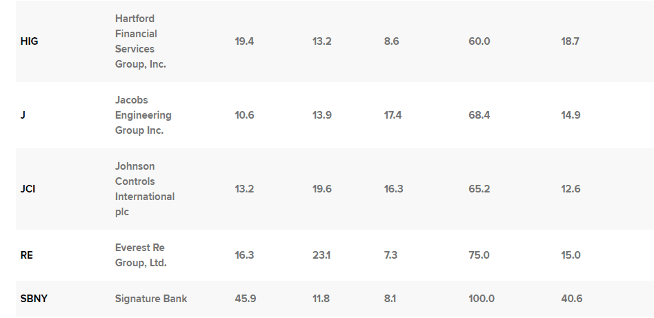 Největší oblibě se mezi analytiky těší Signature Bank, jejíž akcie hodnotí 100 % analytiků jako „buy“. Podle mediánu cílové ceny analytiků se akcie za rok propadly o více než 40 %, ale mají potenciál růstu o 40,6 %. Její růst zisku na akcii se v letošním roce odhaduje na 45,9 % a v příštím roce na 11,8 %.