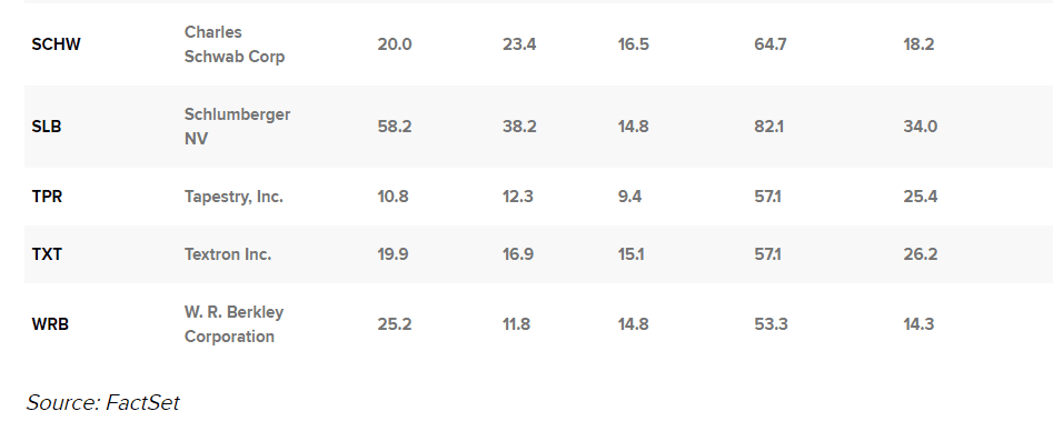 Jménem s největším růstem je Halliburton, u kterého medián cílové ceny analytiků udává očekávané zisky ve výši 46,1 %. Růst zisku na akcii se odhaduje na 85,7 % v letošním roce a 39,1 % v roce příštím.