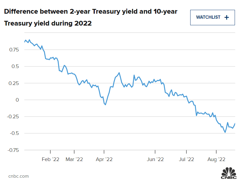 Běžně sledovaný spread mezi výnosy dvouletých a desetiletých dluhopisů se na jaře poprvé dostal na krátkou dobu do záporných hodnot, což znamená, že dvouletý výnos byl vyšší než desetiletý. Poté se v červenci opět invertoval a od té doby se tak již nezměnil.