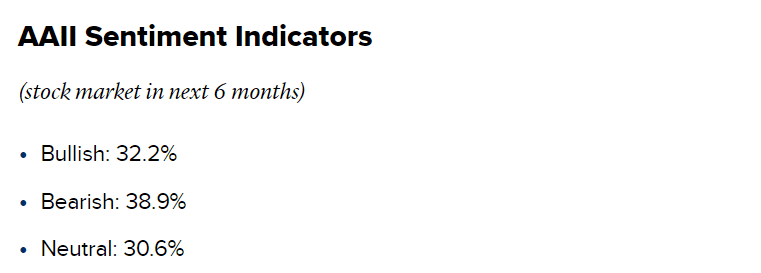 Maloobchodní investoři jsou rozhodně optimističtější než před několika měsíci. Indikátor sentimentu Americké asociace individuálních investorů se posouvá do býčího teritoria, přičemž třetina investorů nyní uvádí, že jsou býčí, což je nejvyšší býčí úroveň od března: