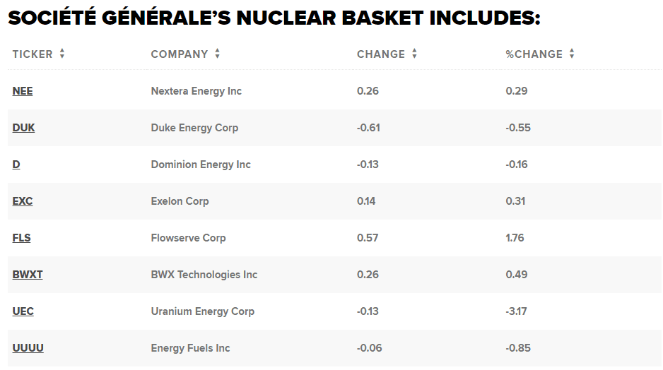 Cílem nového koše společnosti je poskytnout investorům expozici ve všech fázích procesu výroby jaderné energie, od „těžby uranu až po výrobce zařízení a veřejné služby“.
